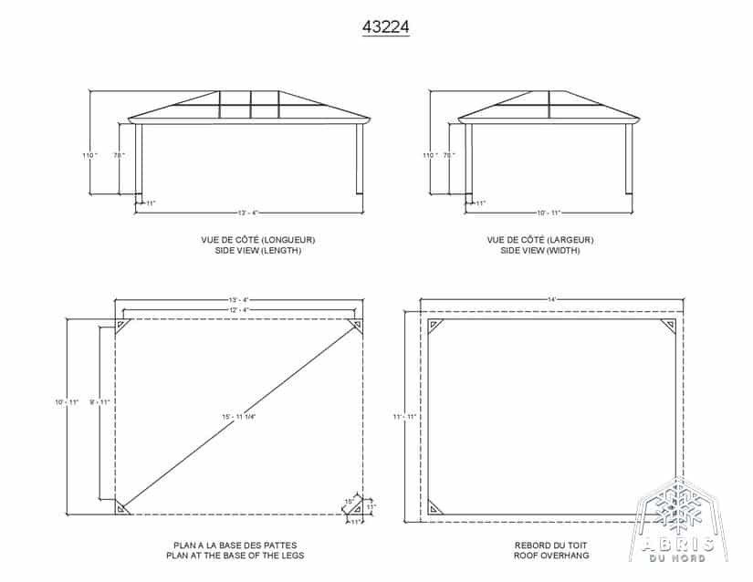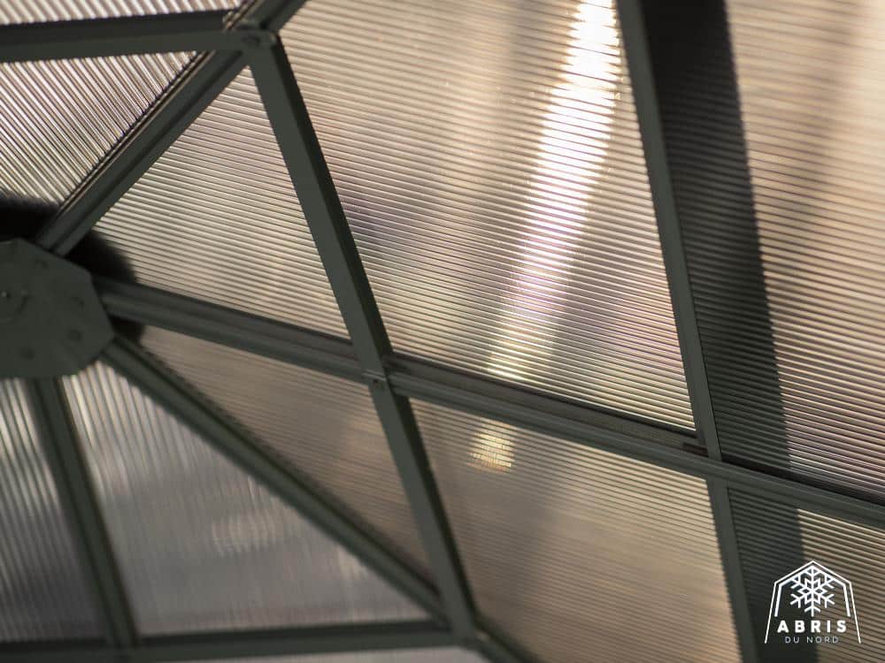• Powder-coated aluminum structure with smoke-colored reinforced polycarbonate roof with UV protection or 0.75 mm galvanized steel roof.