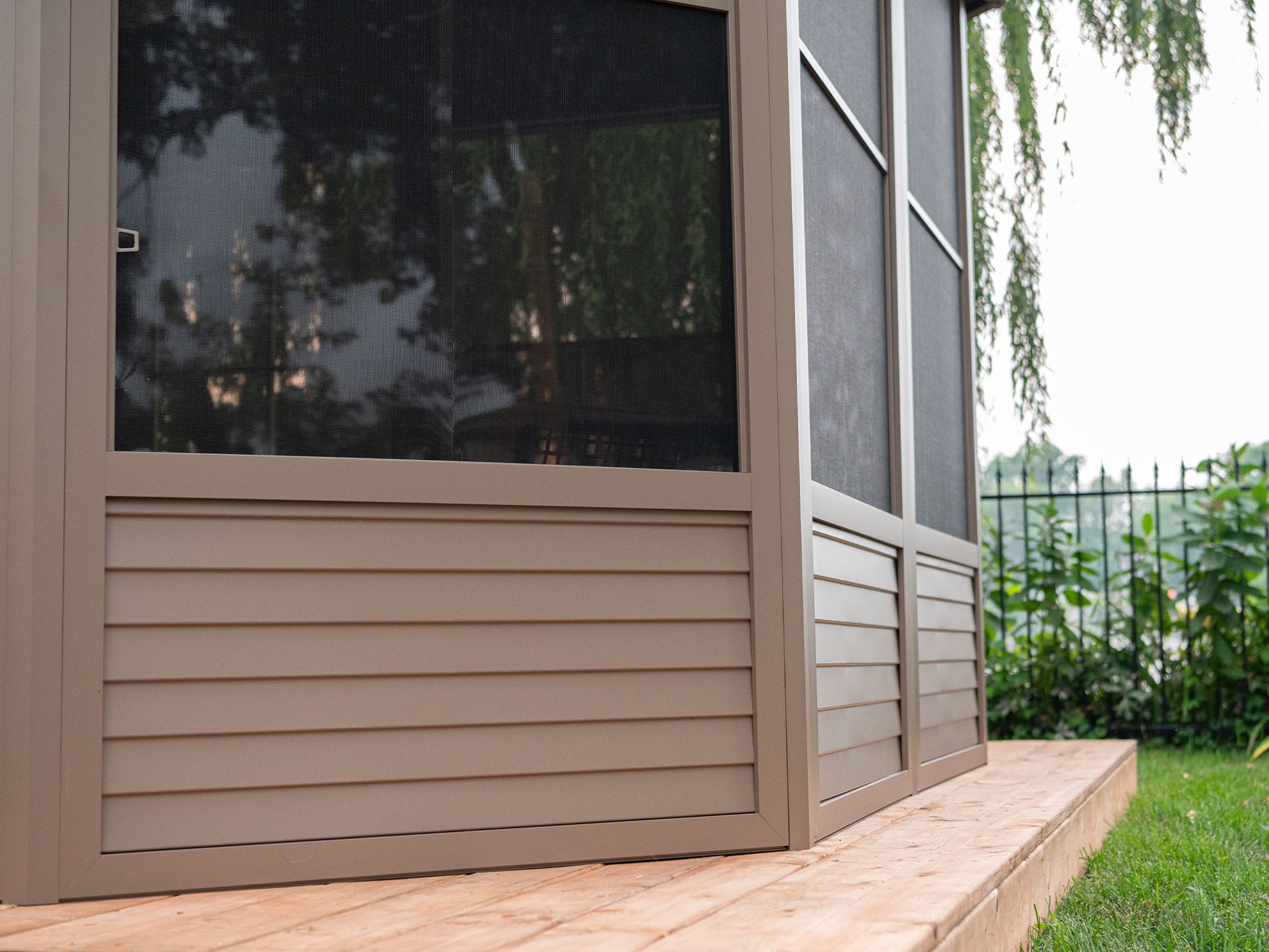 Transformez votre espace extérieur en un véritable havre de paix avec notre solarium Florence. Grâce à cette espace additionnel dans votre cour, vous pourrez réunir tous vos proches pour des soirées agréables, de délicieux repas et des moments de détente inoubliables. Cette structure est idéale et peut être utilisée comme abri pour votre spa. Cette superbe addition à votre espace de vie extérieur vous mettra à l’abri des intempéries pour les années à venir tout en ajoutant de la valeur à votre propriété. Cette unité peut être laissée en place toute au long de l’année, vous évitant ainsi, des problèmes de montage et de démontage à la fin de la saison. Construit en aluminium extrudé, le solarium Florence est équipé d’élégants panneaux de toit en polycarbonate renforcé, de deux portes coulissantes et des panneaux de fenêtres en PVC à 5 positions. Ce solarium a été soigneusement conçu pour résister à l’exposition à la pluie, à la neige et aux rayons UV.