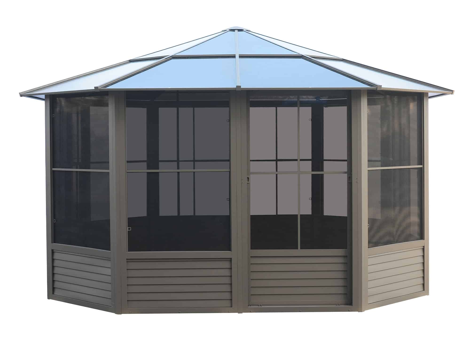 Solarium Florence Auto-Portant 12×12 Beige Avec Toît en Polycarbonate