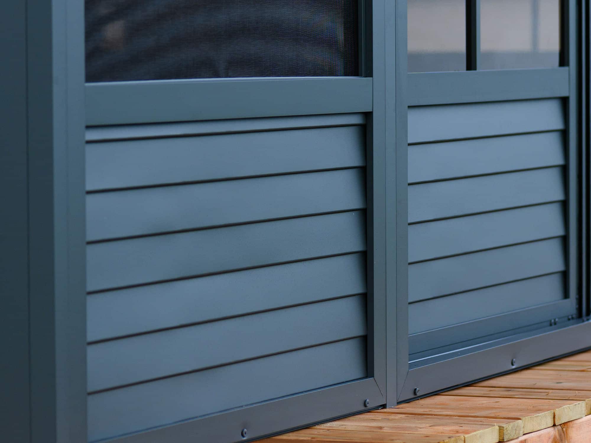 Prolongez le plaisir de votre espace extérieur avec notre solarium Florence mural. Cette extension de votre maison fournira l’espace nécessaire pour rassembler tous vos proches pour une soirée de dîner et de détente, ou elle peut être utilisée comme abri idéal pour votre spa. Ce bel ajout à votre espace de vie extérieur vous mettra à l’abri des éléments pour les années à venir tout en ajoutant de la valeur à votre propriété. Cette unité peut être laissée en place toute l’année, vous évitant ainsi les problèmes de montage et de démontage à la fin de la saison. Le solarium Florence mural est construit en aluminium extrudé et dispose d’élégants panneaux de toit en polycarbonate renforcé, de deux portes coulissantes et de panneaux de ventilation à 5 positions. Ce solarium a été soigneusement conçu pour résister à l’exposition à la pluie, à la neige et aux rayons UV.