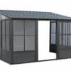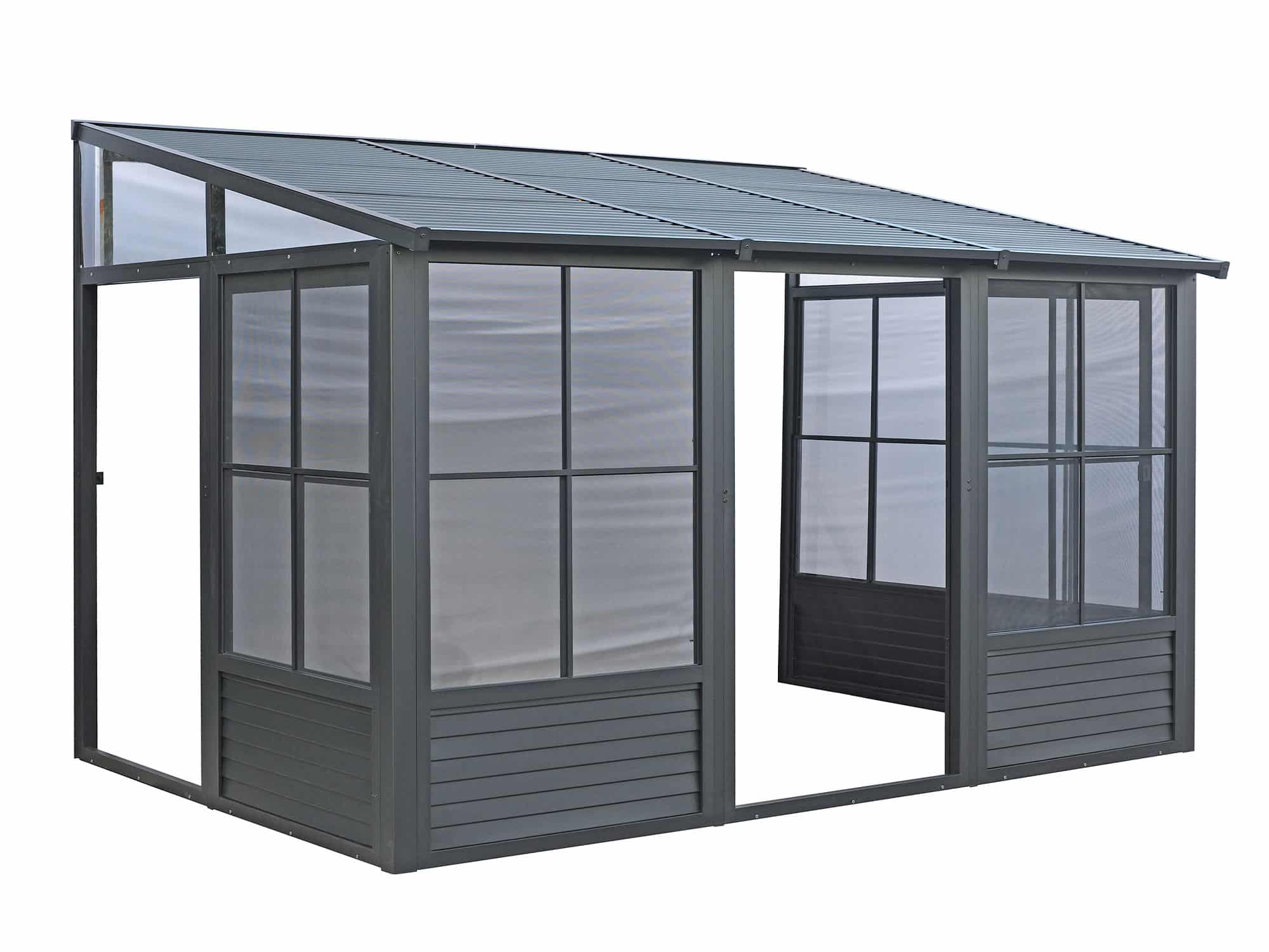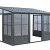 Prolongez le plaisir de votre espace extérieur avec notre solarium Florence. Cette extension de votre maison fournira l’espace nécessaire pour rassembler tous vos proches pour une soirée de dîner et de détente, ou elle peut être utilisée comme abri idéal pour votre spa. Ce bel ajout à votre espace de vie extérieur vous mettra à l’abri des éléments pour les années à venir tout en ajoutant de la valeur à votre propriété. Cette unité peut être laissée en place toute l’année, vous évitant ainsi les problèmes de montage et de démontage à la fin de la saison. Le solarium Florence est construit en aluminium extrudé et dispose d’élégants panneaux de toit en acier galvanisée, de deux portes coulissantes et de panneaux de ventilation à 5 positions. Ce solarium a été soigneusement conçu pour résister à l’exposition à la pluie, à la neige et aux rayons UV.
