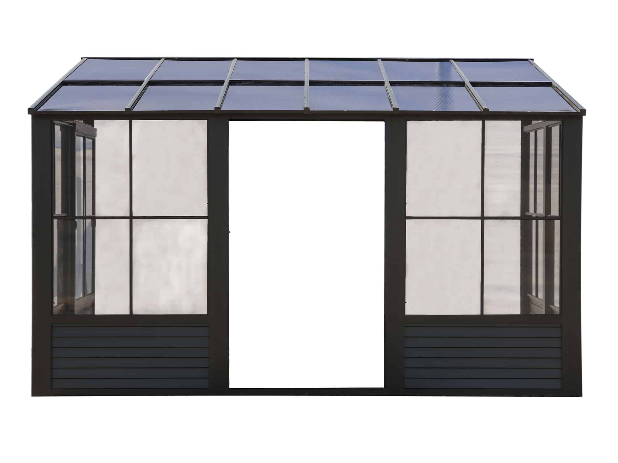 Prolongez le plaisir de votre espace extérieur avec notre solarium Florence mural. Cette extension de votre maison fournira l’espace nécessaire pour rassembler tous vos proches pour une soirée de dîner et de détente, ou elle peut être utilisée comme abri idéal pour votre spa. Ce bel ajout à votre espace de vie extérieur vous mettra à l’abri des éléments pour les années à venir tout en ajoutant de la valeur à votre propriété. Cette unité peut être laissée en place toute l’année, vous évitant ainsi les problèmes de montage et de démontage à la fin de la saison. Le solarium Florence mural est construit en aluminium extrudé et dispose d’élégants panneaux de toit en polycarbonate renforcé, de deux portes coulissantes et de panneaux de ventilation à 5 positions. Ce solarium a été soigneusement conçu pour résister à l’exposition à la pluie, à la neige et aux rayons UV.